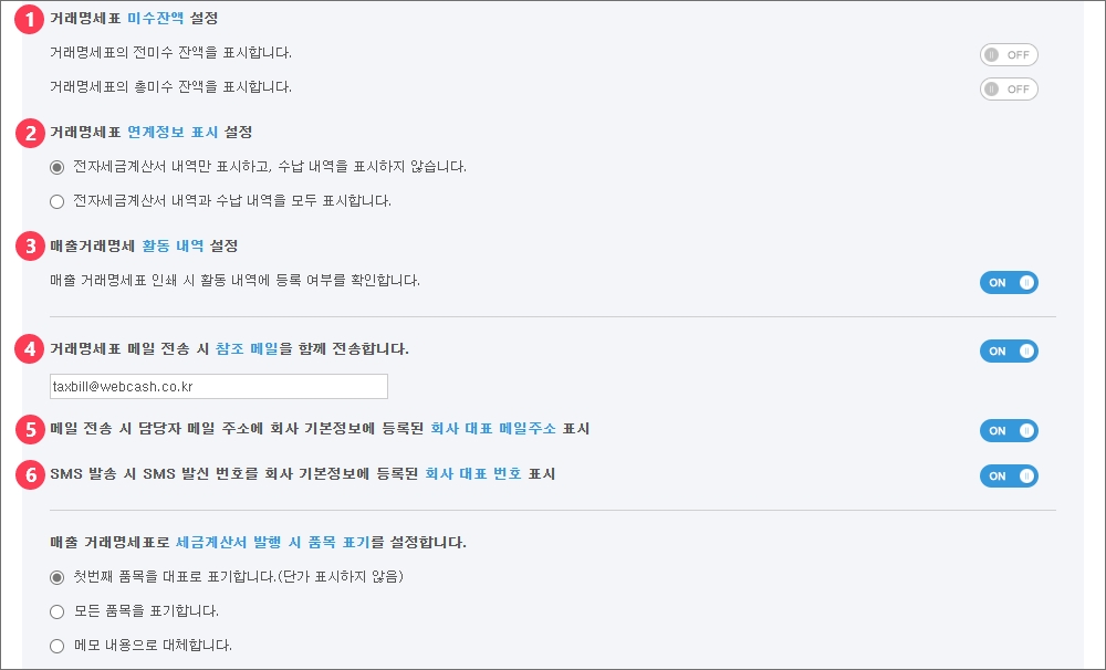 ② 거래명세표와 연계되는 수납내역 표시 여부를 선택할 수 있습니다.