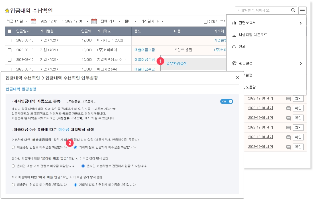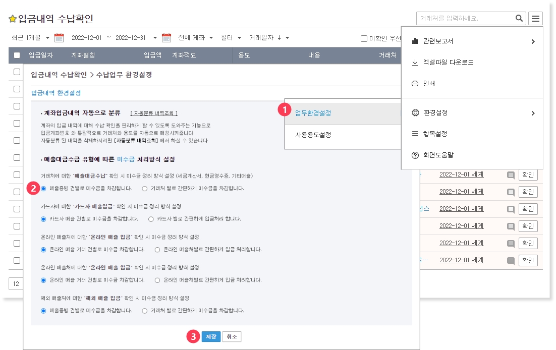 2. 매출 증빙별 수납처리 환경으로 재 설정하기